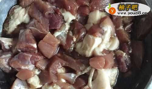 先将肉切小块放入蚝油,酱油,腌制十分钟左右。