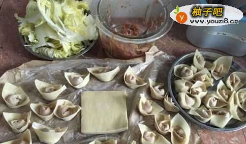 其实云吞馄炖啊这都是一类的,还有重庆的抄手,其实都是简单的皮包着馅煮出来的美食。做法如下: