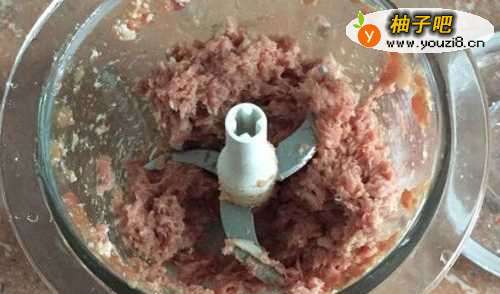 4然后把肉用绞肉机搅碎。