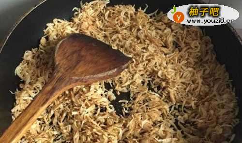 3虾皮抄好了就捣碎成这样。