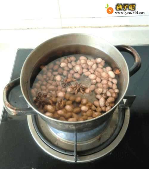 锅中加入适量的清水再放入花生米和大料煮至花生熟。