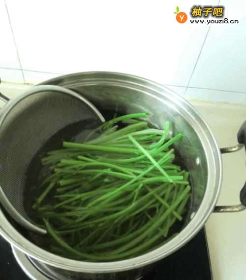 2芹菜摘洗干净开水焯烫过凉。