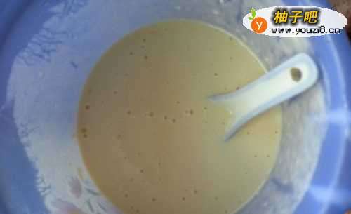 3面粉加鸡蛋,搅拌均匀,不要太稀也不要太稠