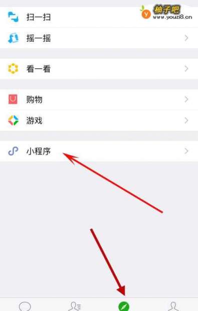 打开微信,点击发现,小程序。