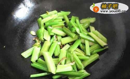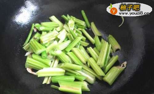 5倒入西芹快速翻炒一下
