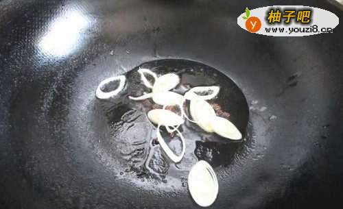 4倒入葱花爆香