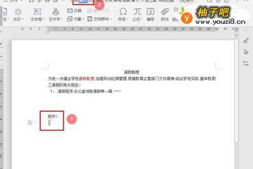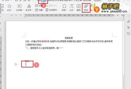 3在"插入"选项卡,点击【附件】;