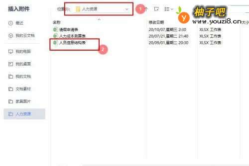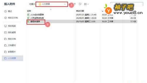 4在“插入附件”对话框中,选择存放文件路径下的【文件】;