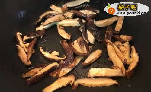 4热锅下油,下香菇炒香。