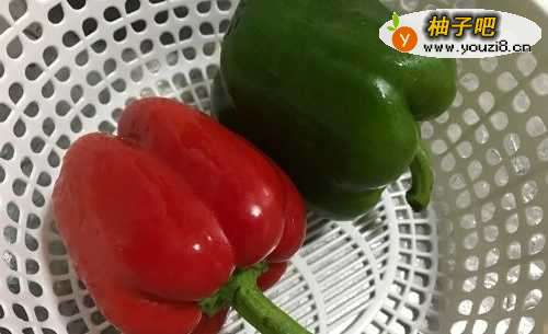 2青椒红椒洗净,去蒂去籽。