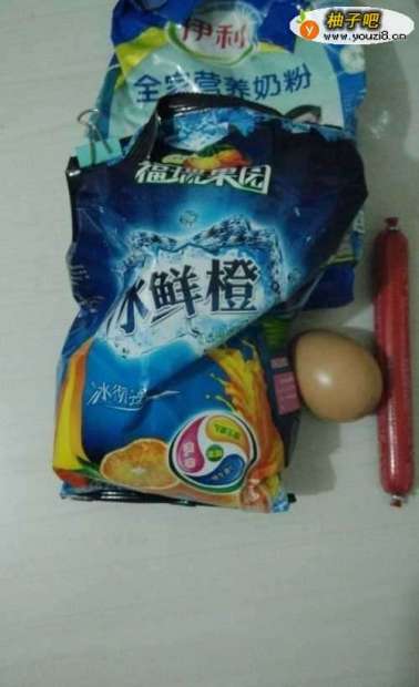 小编没有买到蛋糕粉,用面粉也可以(买无筋面粉)。用面粉的话需要加泡打粉。蛋糕粉不需要加泡打粉。鸡蛋一个打散。火腿肠切成小丁。