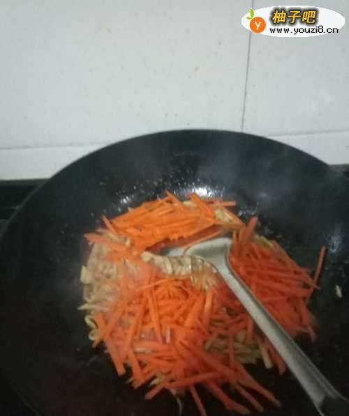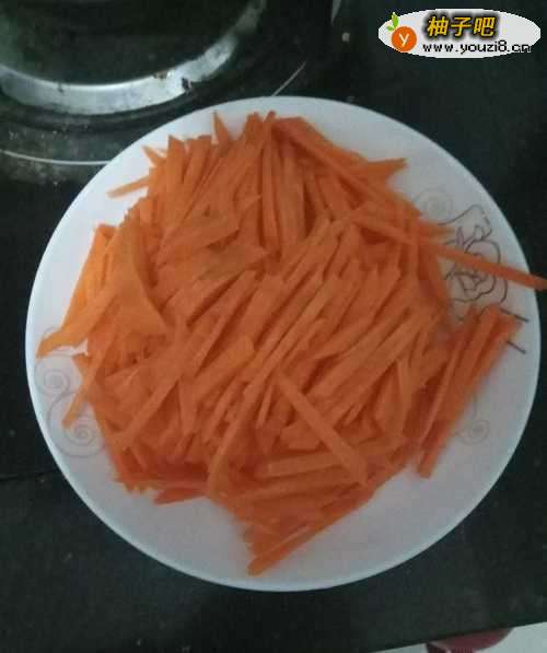 2胡萝卜洗干净切细丝。