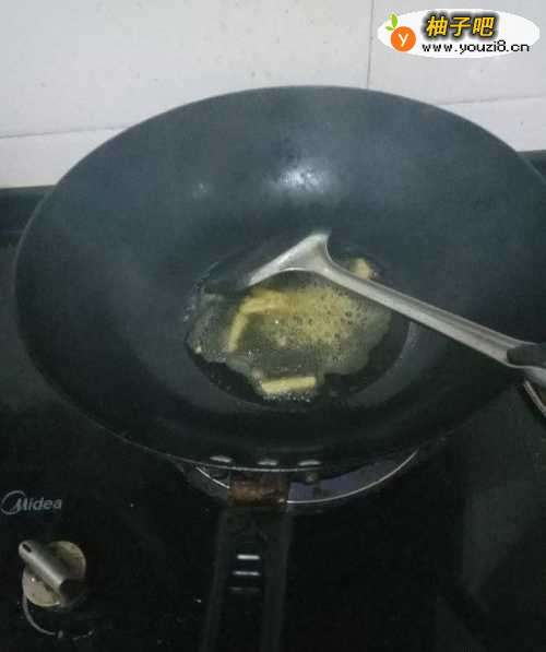 5开火,锅热后加入适量食用油,油热后加入生姜。