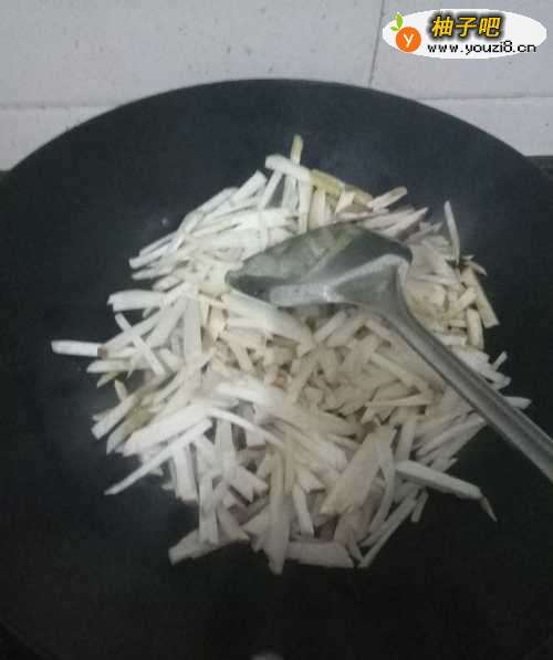 杏鲍菇洗干净,切丝。