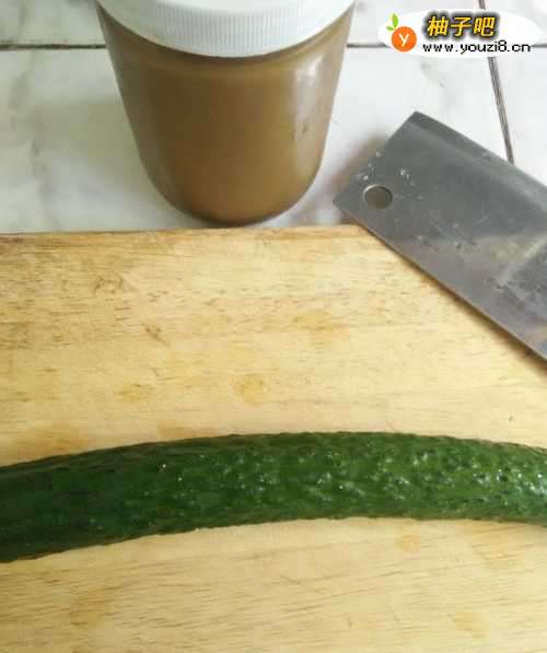 准备一根黄瓜和芝麻酱。