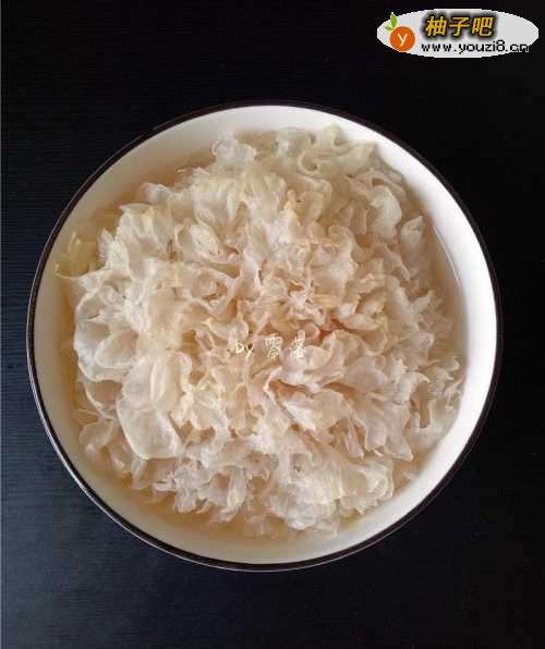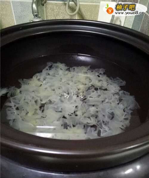银耳提前用清水泡发;银耳洗净后去蒂,撕碎;
