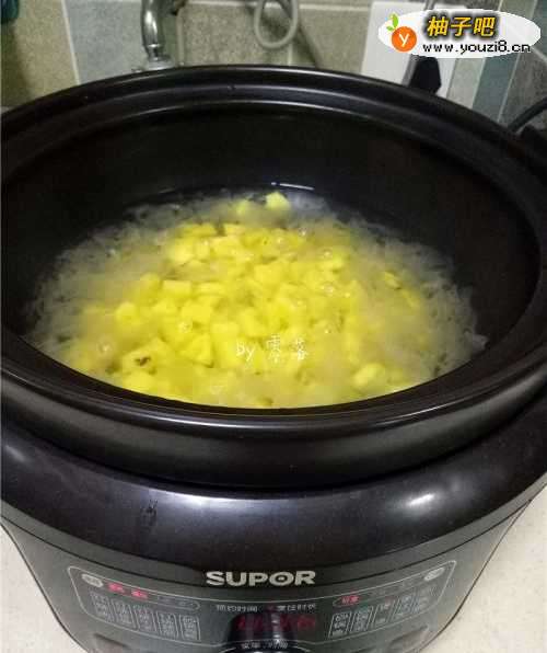 7时间剩余30分钟时,放入菠萝丁,继续“煲汤”;