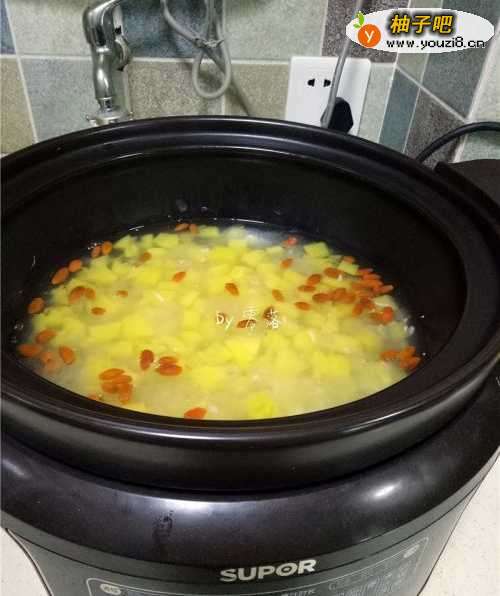 8时间剩余5分钟时,放入洗净并挤干水分的枸杞;