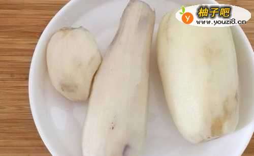2藕洗净、削皮。