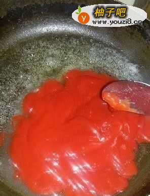 8熬汤汁,放糖两大勺,白醋一大勺,番茄酱三大勺,加水两勺。熬煮起泡时起锅!