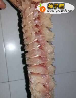 245度角斜45度角切第一步,不要把鱼皮切断了!