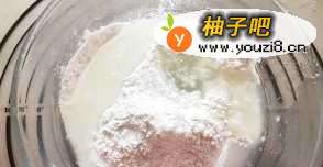 3糯米粉和开水混合。