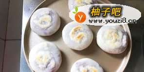 6压扁包入紫薯芋泥。