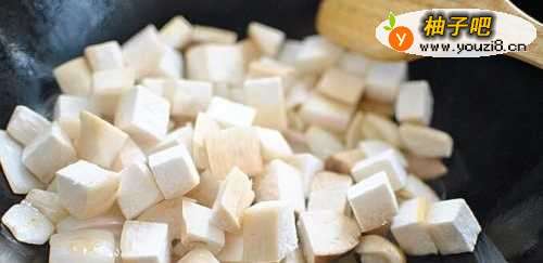 4锅内放少量黄油,烧热后放入腌渍好的牛肉粒煎至表面变色,倒入白葡萄酒和黑胡椒翻炒几分钟后盛出;