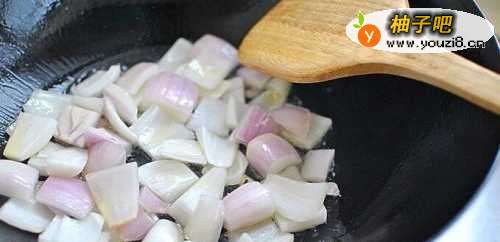 5另起一干净的锅,放油烧热后倒入洋葱爆香;