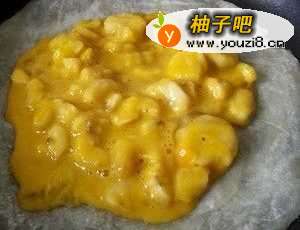 3香蕉切片加一小勺白糖和鸡蛋搅匀
