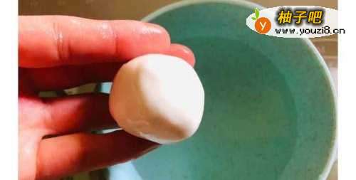5准备一碗水,一盘白芝麻,糯米团在水里蘸一下。
