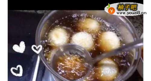 8准备一口奶锅,凉油放入糯米团,最小火,用漏勺轻轻拨动一下防止生锅。