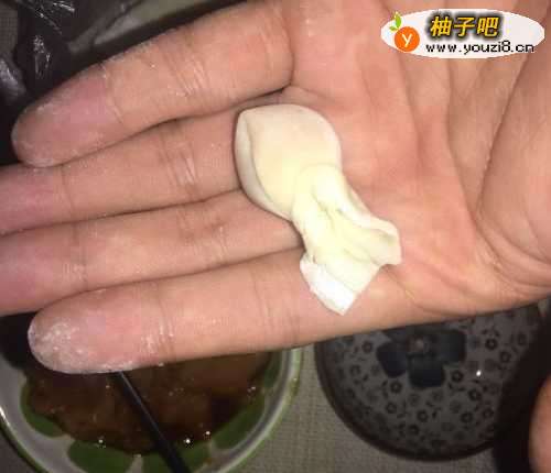 5接着把扁食的口收一下,随便捏一下就可以了。