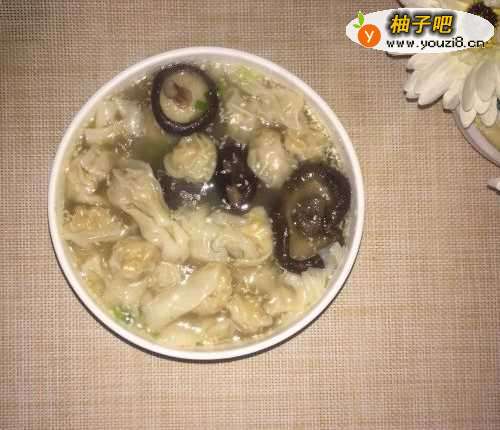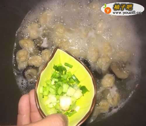 7等到香菇煮好后倒入扁食,烫三分钟。