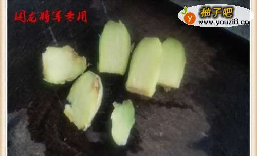 7生姜切片,放于锅中一同煸炒。