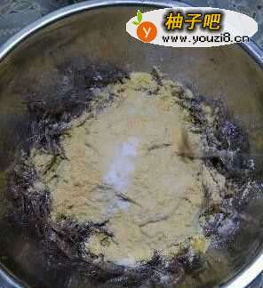 2控干水的小虾米加入适量面粉,玉米面脾矿良粉,少许盐和小苏打。(玉米面有利于蓬松,小苏打有利于色泽红亮,这个也可以省略。)