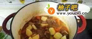 10再倒入土豆块,调入盐和的黑胡椒粉,继续小火煮上20分钟左右;