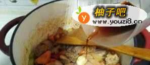 8再倒入100ml红酒煮上2分钟,挥发掉酒精;