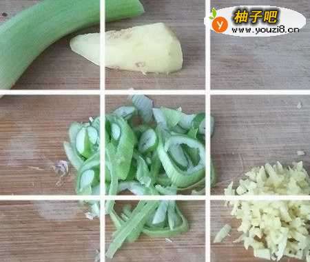 3葱切葱花,姜去皮后,切碎。