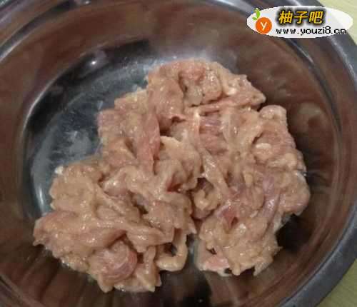 2瘦肉洗净切丝,并用盐,胡椒粉,料酒,蛋清,和淀粉上浆腌制10分钟