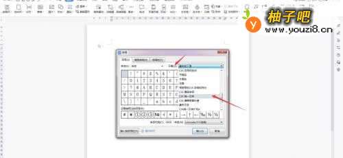 2在符号选择界面点击“子集”的下拉菜单选择“CJK统一汉字”