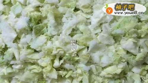 4先洒上盐300克的盐,用筷子拌匀,洒上盐是有利于菜出水