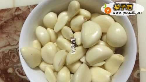 6把蒜头大的切小点,一个切成二,小的不用切,再洒上剩余的200克盐
