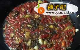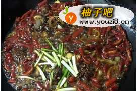 6炒锅洗净,热油适量,依次倒入豆瓣豆豉、香料、干辣椒,中小火炒出香味;