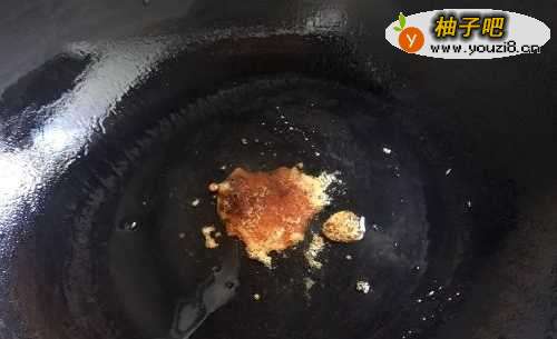 4接着开火,锅烧强茄热之后加入适量油,油热了之后把冰糖倒进去炒糖色,冰糖冒泡泡的是就可以把猪蹄倒进去翻炒,翻炒到猪蹄都上色后放入姜片!