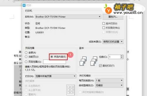 4在“打印”对话框的页面范围,勾选【所选内容】,然后点击【确定】即可;