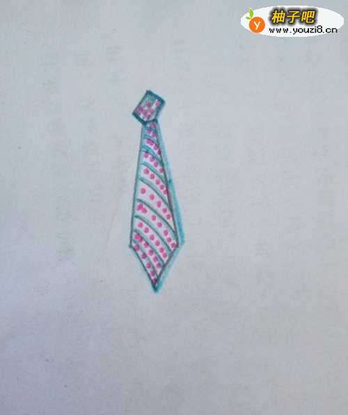 5如图,用红色彩笔在领带上点上一些小点点装饰。
