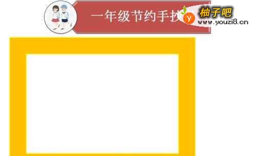 2在【一年级节约手抄报】标题恩选正下方的左侧位置处,画出橙色的框架,如下图所示。
