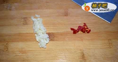 22,大蒜直接拍碎,辣椒切好后备用。