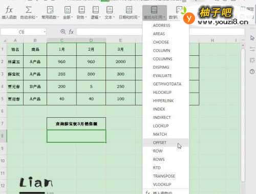 1、首先,打开WPS Office Excel数据表格;2、选择单元格【C8】,点击【公式】—【查找与引用】;3、在“查找与引用”函数列表为,选择函数【OFFSET】;4、在“函数参数”对话框中,输入【参数条件】,然后点击【确定】。